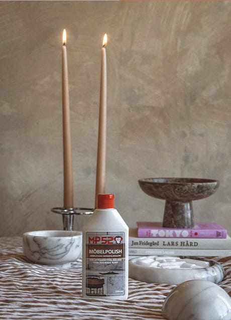 MP står för Möbelpolish och 52 för året 1952 – året då allt började. När den första flaskan MP52 Möbelpolish lanserades blev den snabbt en favorit i svenska hem tack vare sin enkelhet och sitt skinande resultat. Sedan dess har över 70 år gått, men produkten är fortfarande lika uppskattad. Generation efter generation har använt MP52 Möbelpolish för att rengöra, polera och skydda sina ytor – från lackade möbler till kakel, plast och marmor.